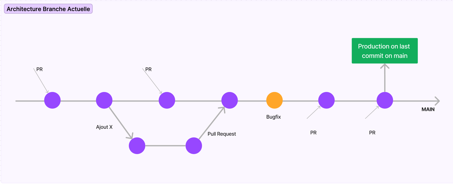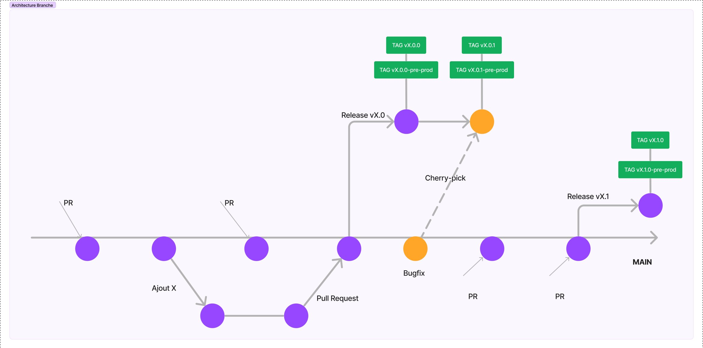 Actuellement, il n'y a pas de branches de release. La branche principale est déployée à chaque commit.